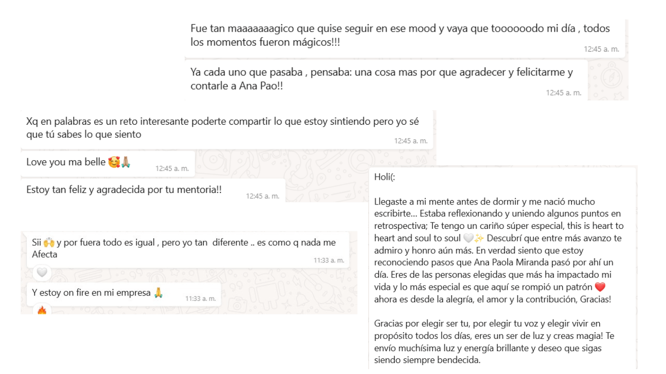 "Mi historia empieza desde el día que nací, pero se construye aún más desde que decidí enfocarme en el desarrollo personal y se expandió aún más cuando empecé a trabajar contigo"